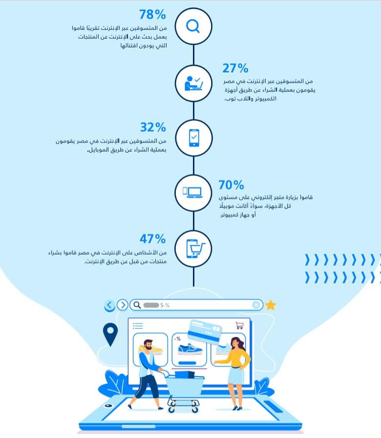 كما يقوم المتسوقون في مصر بنسبة 20% بالتسوق عبر المتاجر العادية والمتاجر الإلكترونية للاستفادة من العروض والخصومات المقدمة.